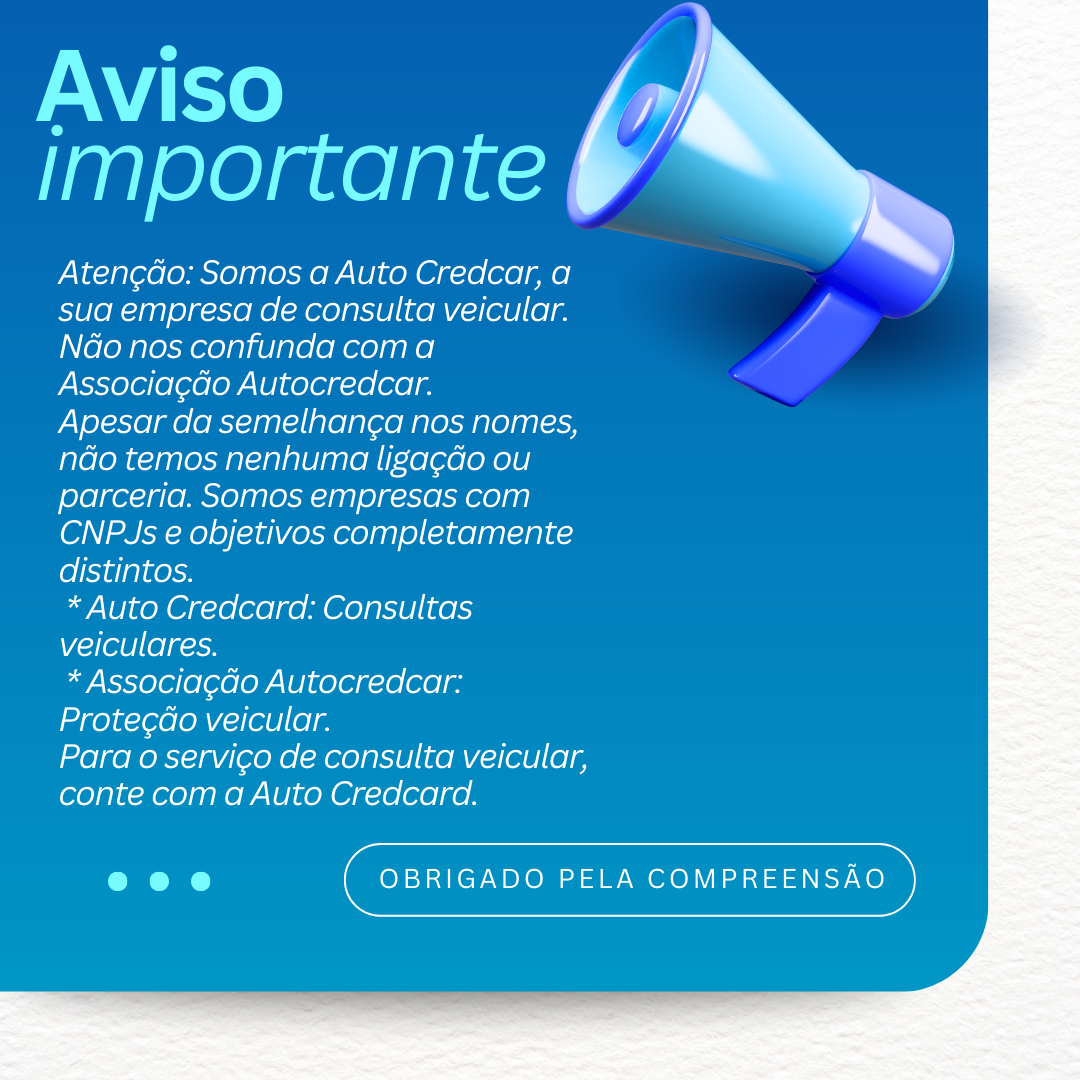 Placa confirmada? Adquira seu plano e cadastre-se na Auto CredCar. Se já é nosso parceiro, informe seus dados e finalize sua compra. Você também pode acessar diretamente a Área do Usuário.